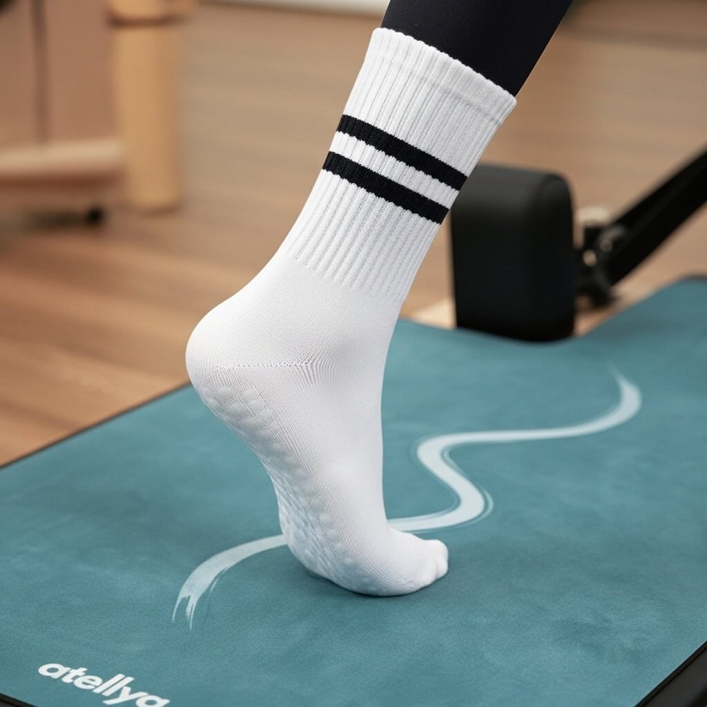 Many practitioners use non-slip socks or grip socks to improve traction on the reformer. When paired with a quality pilates reformer mat, the combination ensures a secure footing for both hands and feet, offering unmatched stability throughout your workout. This synergy enhances the overall Pilates grip, making every movement more controlled and confident.
